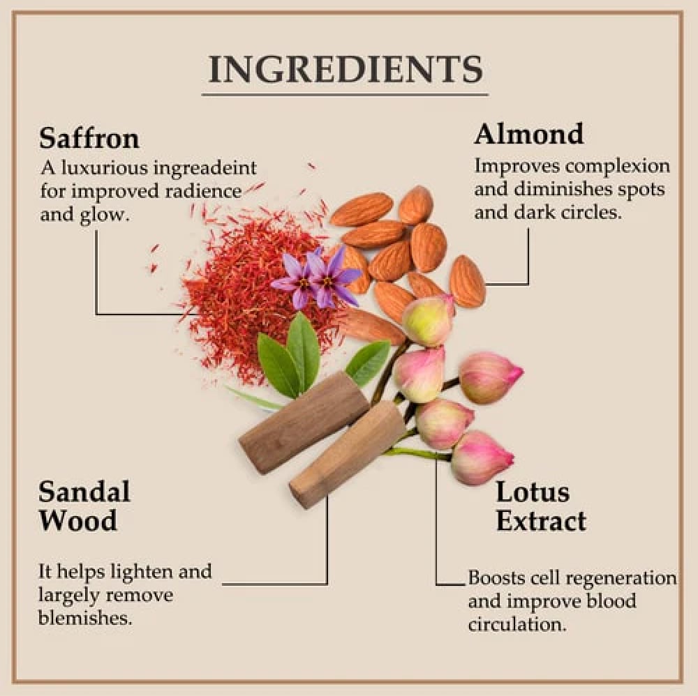 ナガルジュナクムクマディクリームは、カシミールサフラン、純粋なミルク、10の美容を高めるハーブを使用した美容クリームです。肌の顔色と輝きを改善するのに役立ちます。